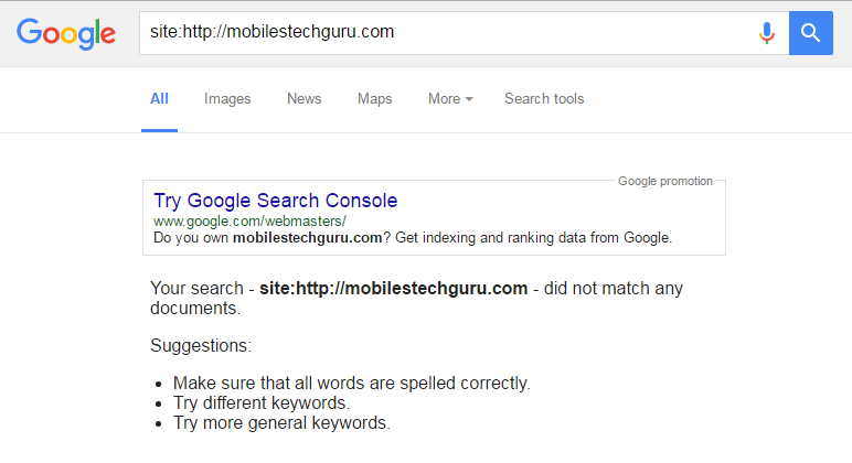 The mobiletechguru(dot)com is a blogger website with good traffic & rank, Sudden the website stopped showing up on google search engine result page .